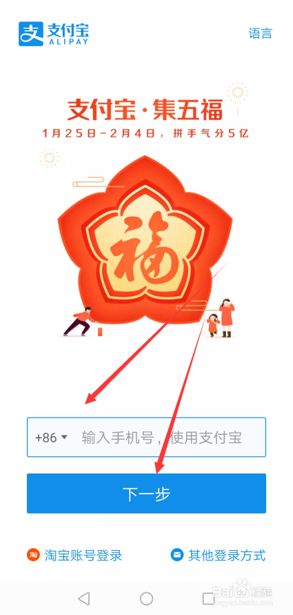 安装好最新付出宝后,直接打开付出宝,然后输入付出宝登录账号,如下图所示。