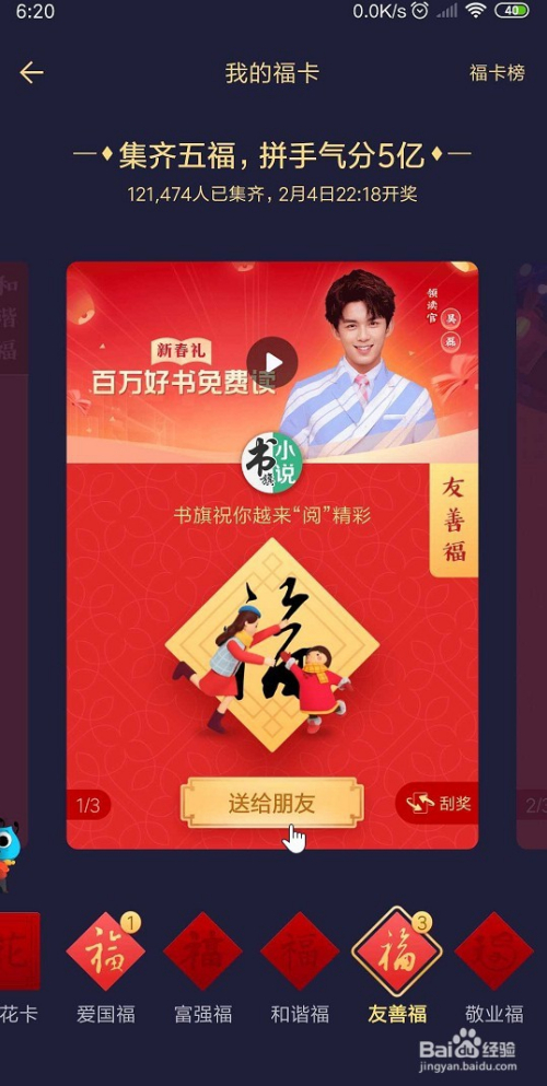 在页面的最上方就可以看到集五福过福年的活动,点击进入