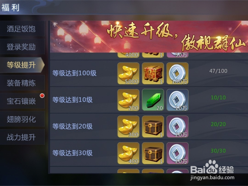 在福利中的每日登录奖励以及品级晋升中都可以获得年夜量的精辟石。
