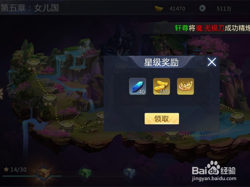 挑战关卡当作功之后,点击右下角的宝箱可以获得精辟石。
