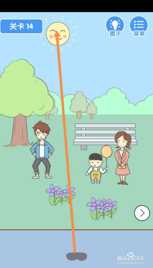 第14关点击标的目的右箭头到右边去。