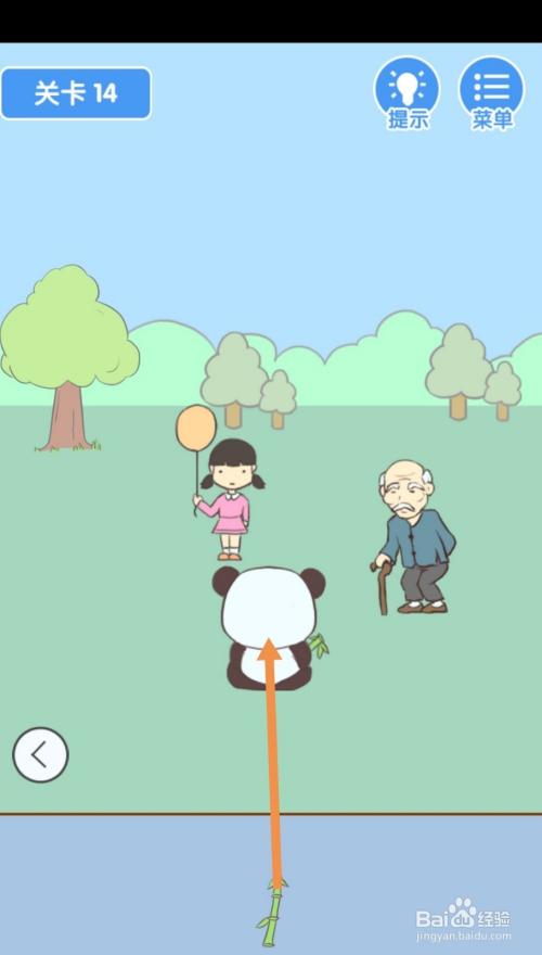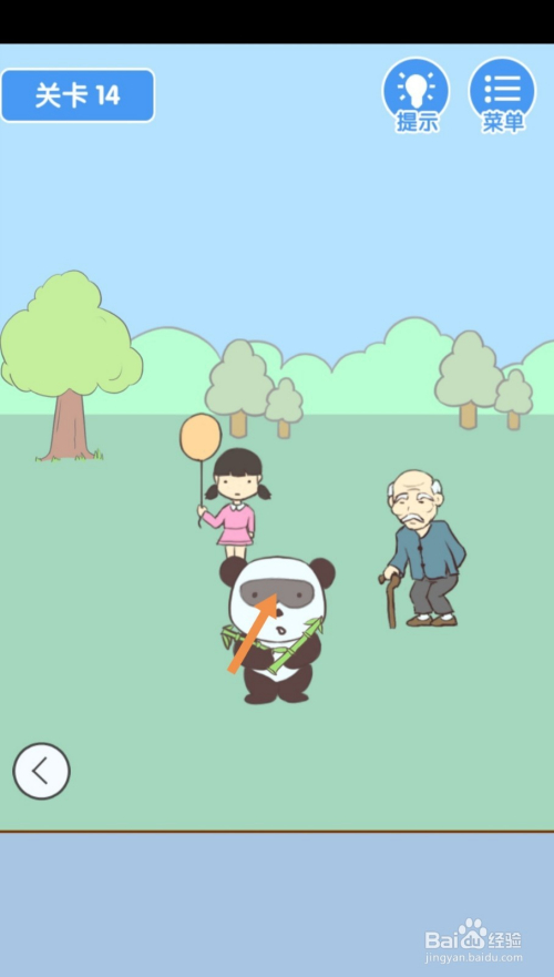 点击熊猫戴在眼睛上的眼罩,然后点击标的目的左箭头到左边去。