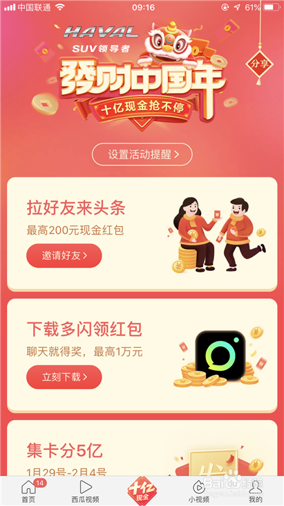 我们来到我们的发家中国年的本家儿界面,然后往下面滑动屏幕。