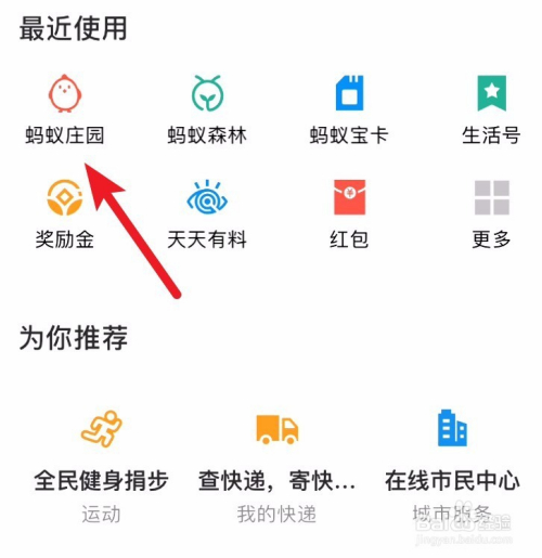 首先我们需要进入到付出宝蚂蚁庄园中。