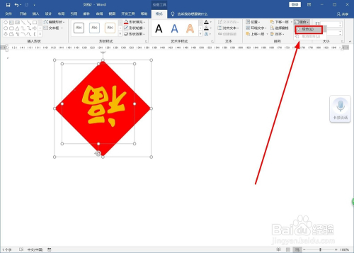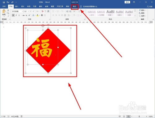 把艺术字和红色菱形同时选中,单击“画图东西”下面的“格局”