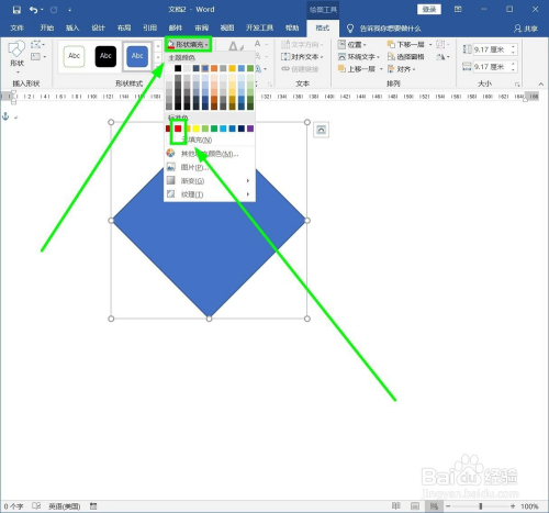 把菱形蓝色底色酿成红色。选中菱形,单击“格局”选项卡,鄙人面找到“前提外形”选项。单击“外形填充”