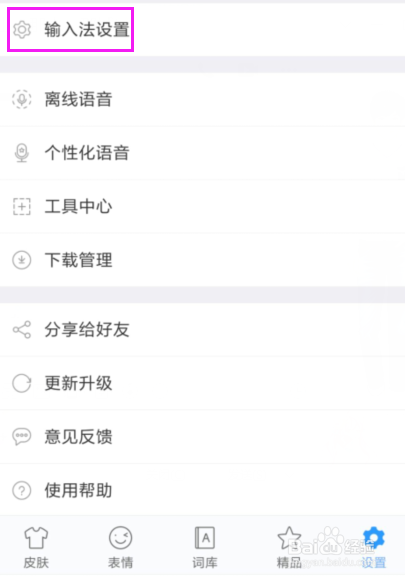 【设置】中指击下后,中指击下【输入法设置】,如图。