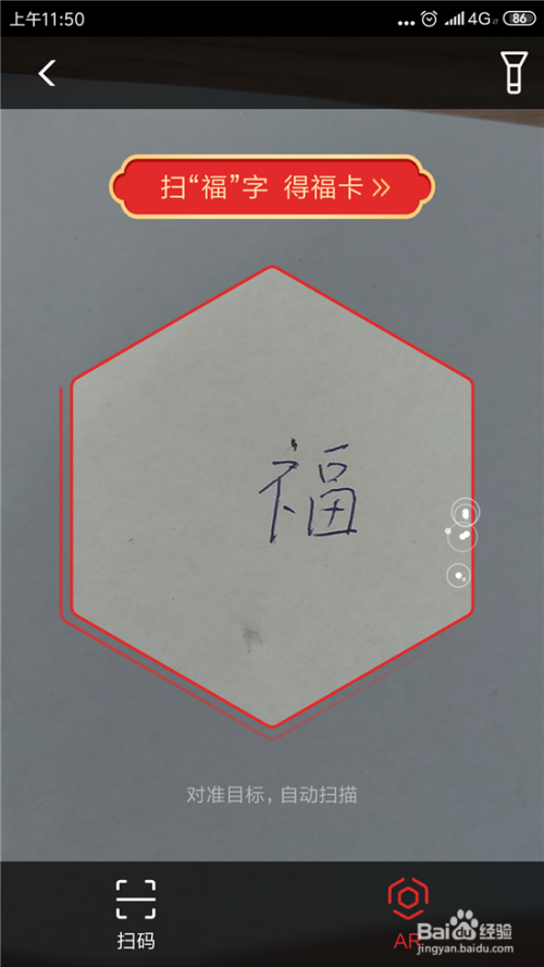 点击事后会打开扫描界面,这时辰瞄准肆意福字,小编这里是本身写的。