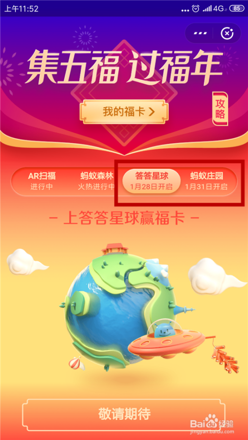 进入到五福的界面如图所示,如许就可以起头集五福了。