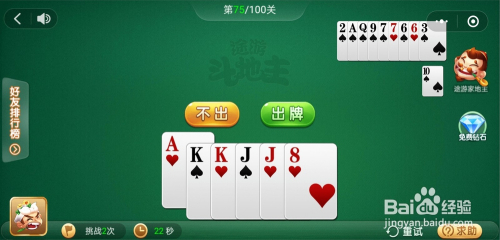 电脑打出一张2,接着打出一对6,我打出一对K,接着打出一对J一张8就过关了。