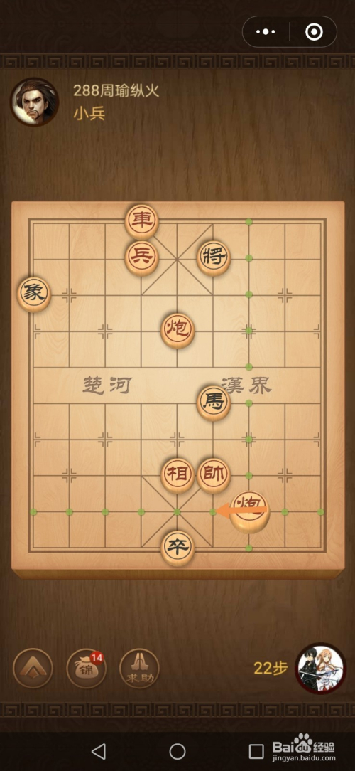 第十五步炮往右移动一步就过关了。
