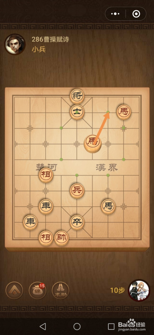 第八步馬移动到下图中箭头标注的位置就过关了。
