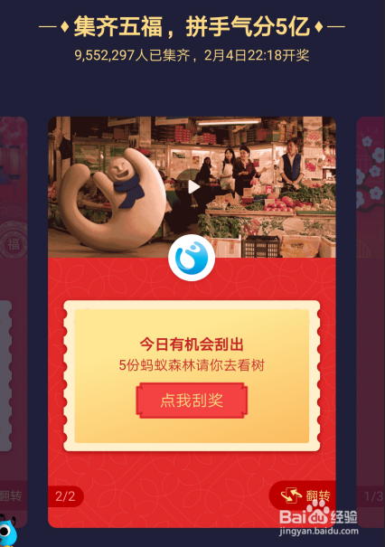 点击刮奖后,五福卡就会刮奖界面,直接点击【点我刮奖】,如下图所示。