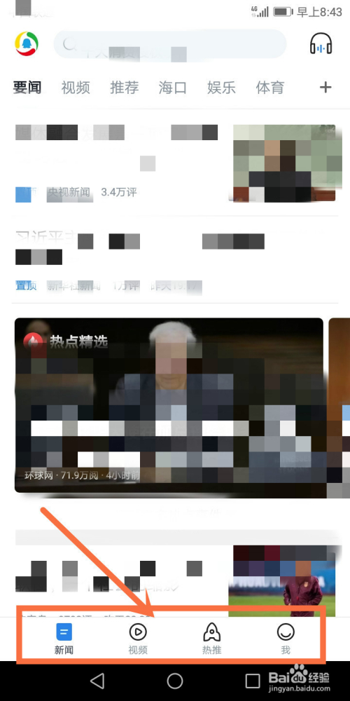 在我们打开的新闻应用页面中可以看到该应用由四个模块构成;