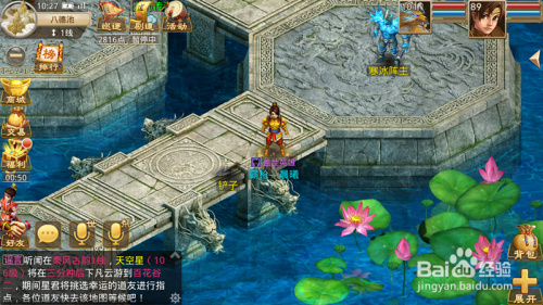 我们在天墉城找到了年夜胡子,点击年夜胡子,得知年夜眉毛去了尽是荷花的处所,我们就想到了八德池这个地图。
