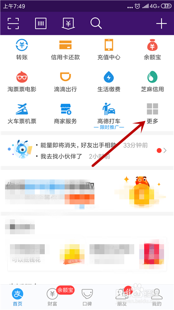 在付出宝顶部中点击【更多】,如图所示。
