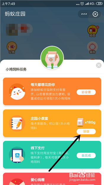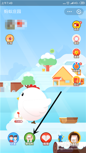 接着在蚂蚁庄园里点击【领饲料】。