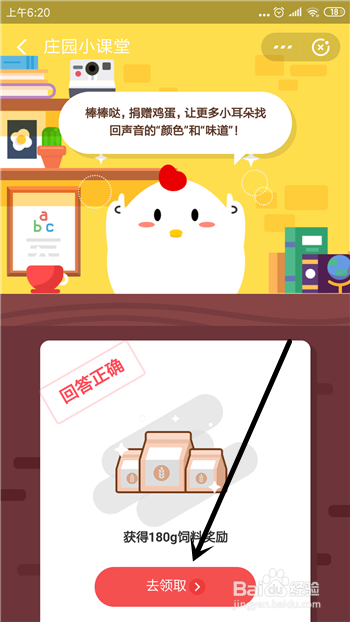 最后在庄园小讲堂里点击【领取】即可火年夜答题饲料。