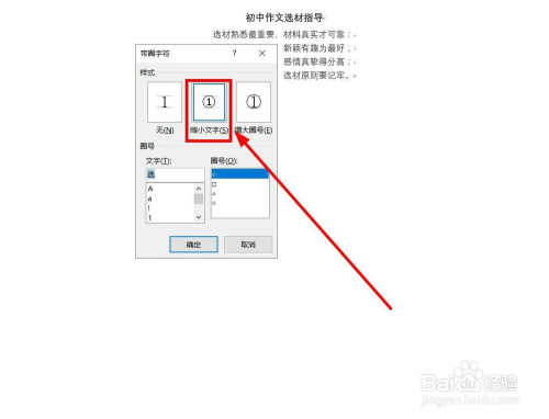弹出“带圈文字”对话框,在样式中国可选择带圈样式是“缩小文字”仍是“增年夜字号”,这里选择默认