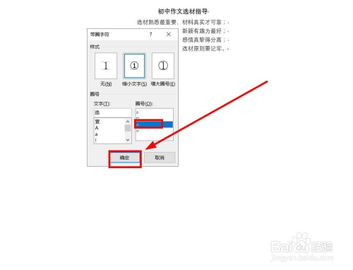 在“圈号”下边选择想要的图案,我们选择“三角”单击,完当作后,单击“确定”