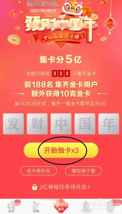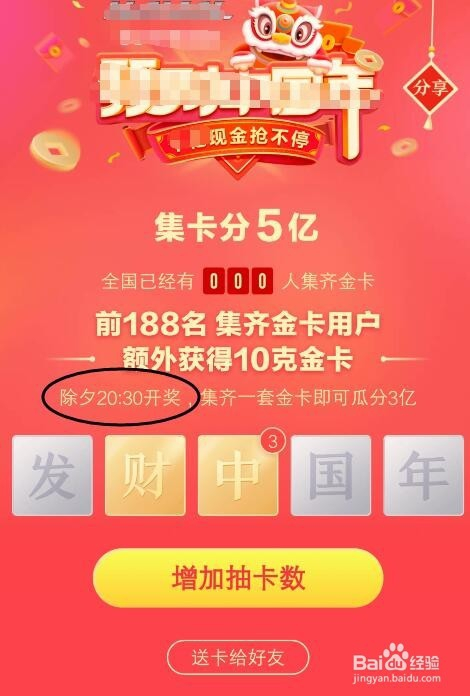 等集齐一套的金卡后,就可以比及大年节(2月4日开奖),等分三亿现金。