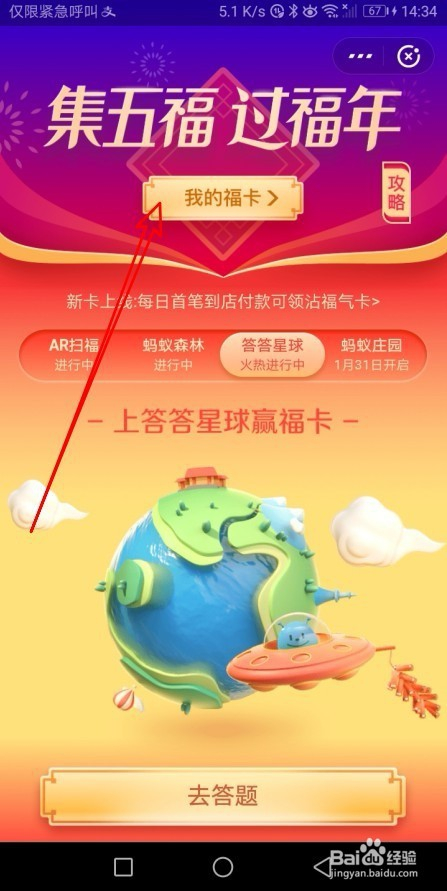 在打开的我的福卡页面中,我们可以点击“沾福分”,接关点击上面的“去沾福分”的按钮。