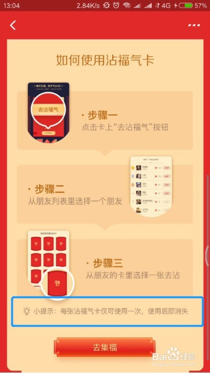 注重沾福分卡只能利用一次,每次利用后就会消逝。