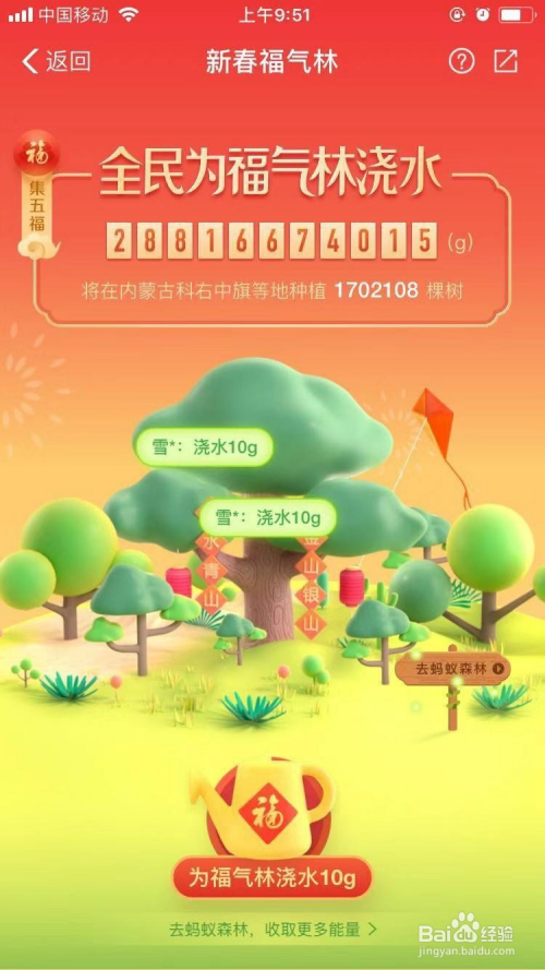 经由过程蚂蚁丛林“福分林”浇水获得福卡:该项目于2019年1月25日开启,点开付出宝内的蚂蚁森理“福分林”,介入全平易近浇水就有机遇获得福卡,经由过程该体例天天可获取两张福卡。