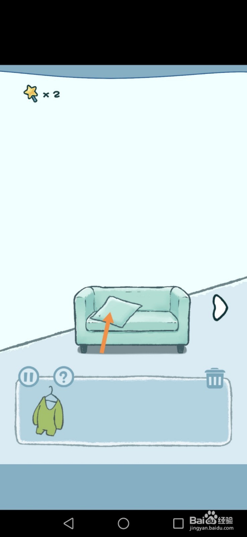 在左边,先点击靠垫,然后点击沙发上的电池。