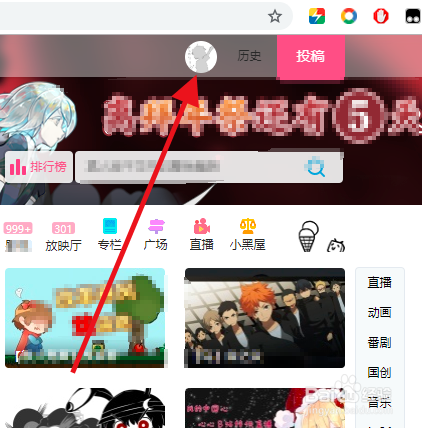 接着大师点击哔哩哔哩上面的头像