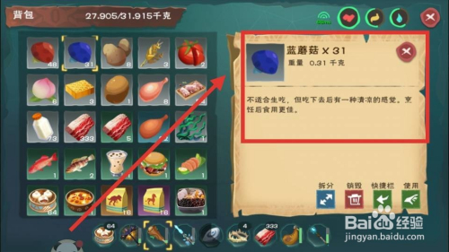 第二步,筹办蓝蜥蜴饲料材料一:【蓝蘑菇】,如下图