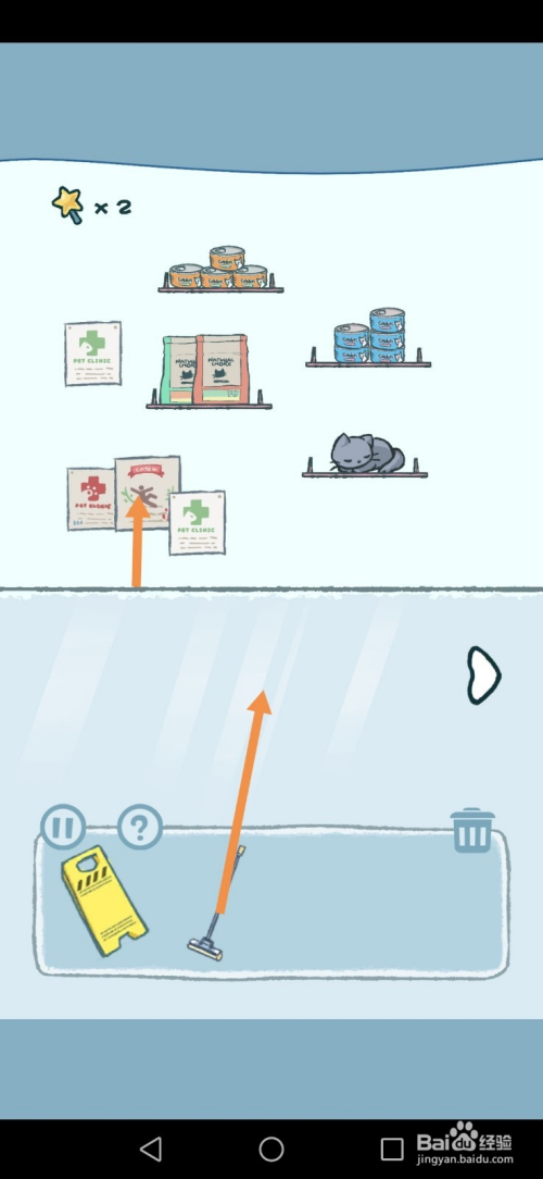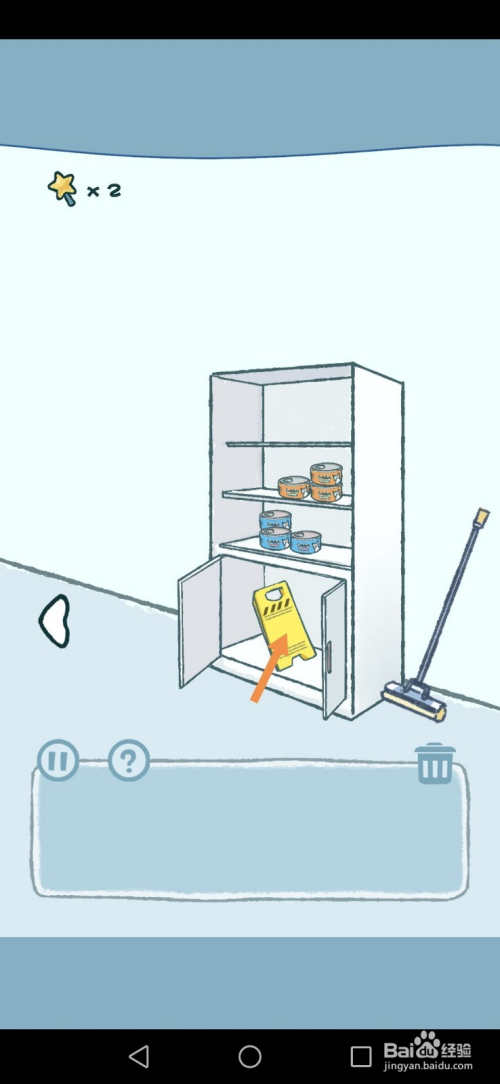 获得通告牌后,先点击柜子旁的拖把,然后点击标的目的左箭头到左边去。