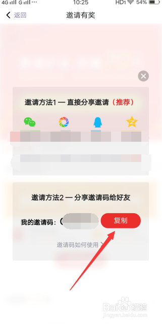 在邀请有奖中,会显示本身的邀请码,复制给老友即可。