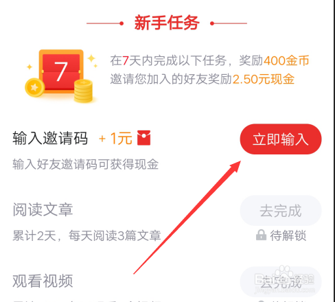 打开I爱福利红包页面,里面有个输入邀请码的新手使命,点击右侧的当即输入。