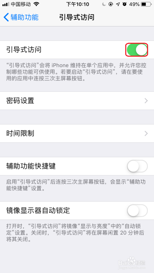 然后在手机上先打开某法式,并单击三次本家儿按钮即可打开”辅助功能快捷键“选项中单击”指导式拜候”选项,然后打开密码界面中输入密码。
