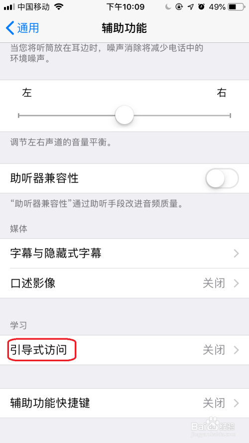 在辅助功能界面下点击“指导式拜候”选项。