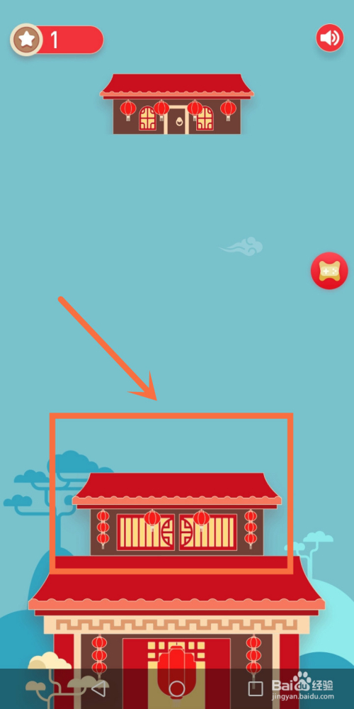 当我们看到上方变换的房子比下方的小,我们点击屏幕肆意位置即可将该变换的房子叠加到最下方的房子上面,我们以此类推,越往上衡宇越小或与其相毗连的同样大小即可;