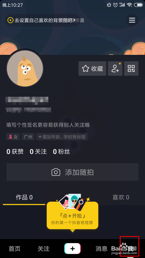 打开手机上的抖音小视频,登录到小我账号中,然后将页面切换到【我】。