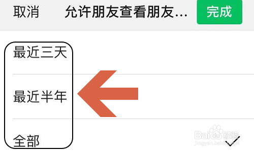 大都人首要设置的应该是许可朋友圈查看的朋友圈规模了,系统默认的是“全数”,点击进入今后可以设置为比来三天、比来半年以及全数,这个和之前的版本是一样的;
