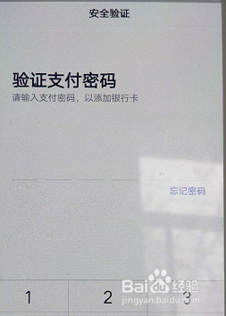 在平安验证界面输入验证付出密码,再添加银行卡号,即可完当作添加。