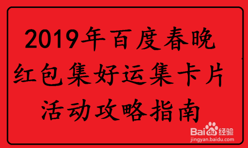 2019年百度联袂春晚推出百度春晚红包活动,百度用户可以经由过程摇一摇、搜刮和小视频等多种体例获得红包。获得的现金红包可以经由过程度小满钱包(原百度钱包)提现。此中第一个活动环节就是百度春晚红包集好运集卡片活动。下面介绍2019年百度春晚红包集好运集卡片活动攻略指南: