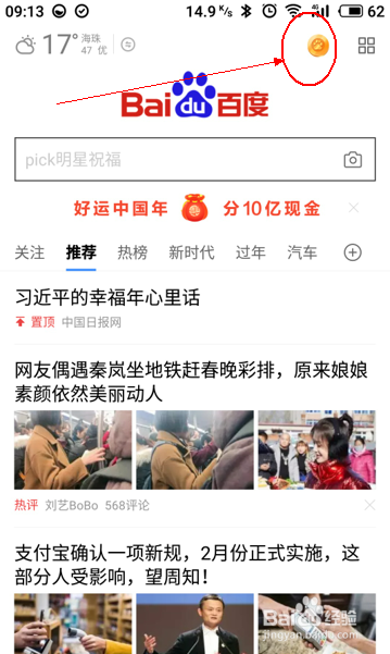 用户需要首先下载或者更新到最新版本的百度APP软件即可加入百度春晚红包活动,进入软件之后点击右上方的活动图标进入活动界面