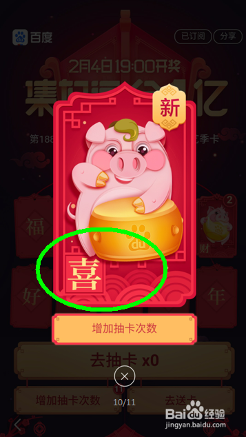 进入集卡片活动之后可以看到百度集卡片活动一共需要集齐10张卡片才能分现金红包