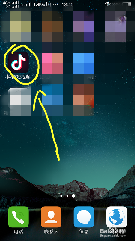 首先我们点击我们的手机界面,回到手机本家儿界面,点击手机桌面上的抖音短视频,进入抖音短视频的界面。