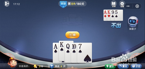妙算子打出一张K,我打出一张A,接着打出一张Q一张7就过关了。