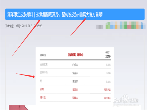 点击进入“玄武麒麟现真身”的活动页面后,就可以找到有关于猪年限制皮肤的通知布告了。