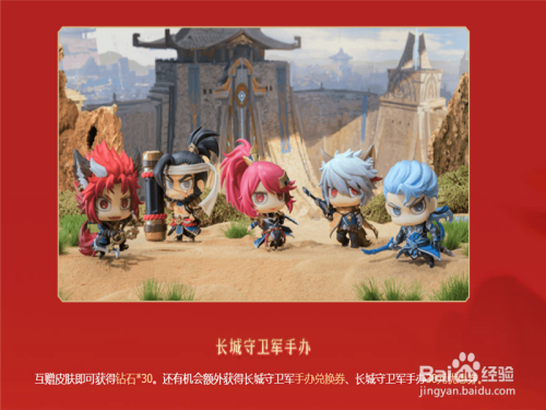 互赠皮肤可以获得30个钻石。还有机遇额外获得长城保卫军的手办兑换券、长城保卫军手办30元优惠券。