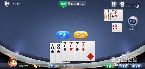 妙算子打出一张8,我打出一张A,接着打出一张8就过关了。
