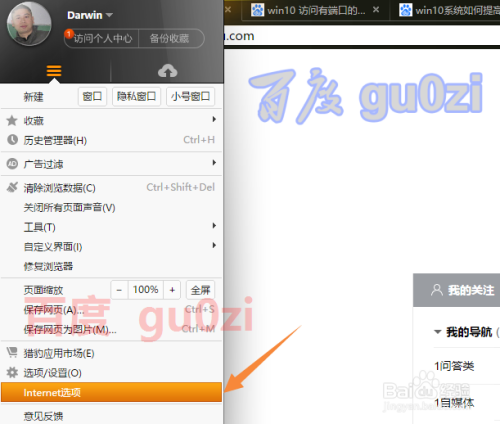 从常用的浏览器中打开菜单,进入 Internet选项设置,