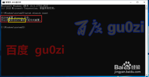 在弹出的号令提醒符窗口中,输入 netsh winsock reset的号令,以重置Winsock目次,这时要记得 从头启用哦!如许才能生效。